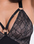 Non-Stop offers options with our first ever Girls Night non-wired body, with deep plunge and narrow set straps for boob support, serving sass and a perfect underwear as outerwear option. Non-Stop features geometric smooth black lace over blush cups with added wide strapping and silver metalware as the microfibre body hugs every curve.