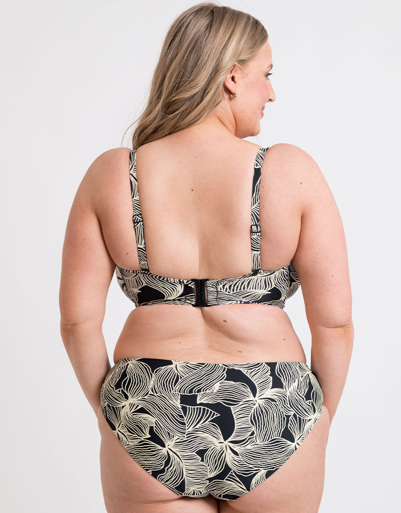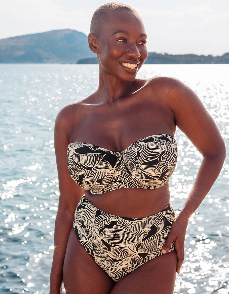 The bandeau fit provides great support based on our bestselling Luxe strapless bra, while the bold graphic leaf print on a black base brings a touch of tropical chic to your swimwear collection and contains recycled fibres.